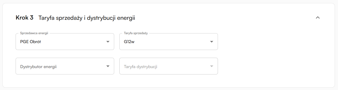 ### Krok 3: Taryfa sprzedaży i dystrybucji energii (wymagany)