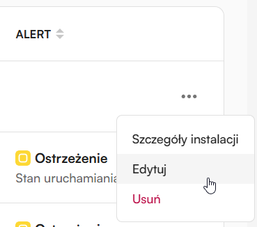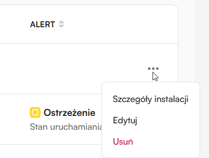Jak mogę edytować stworzoną instalację? Edycja instalacji jest możliwa poprzez kliknięcie trzech kropek na liście instalacji i wybranie opcji „Edytuj”. Drugą opcją jest wejście w szczegóły instalacji, którą chcesz edytować, a następnie kliknięcie przycisku „Edytuj” w prawym górnym rogu.